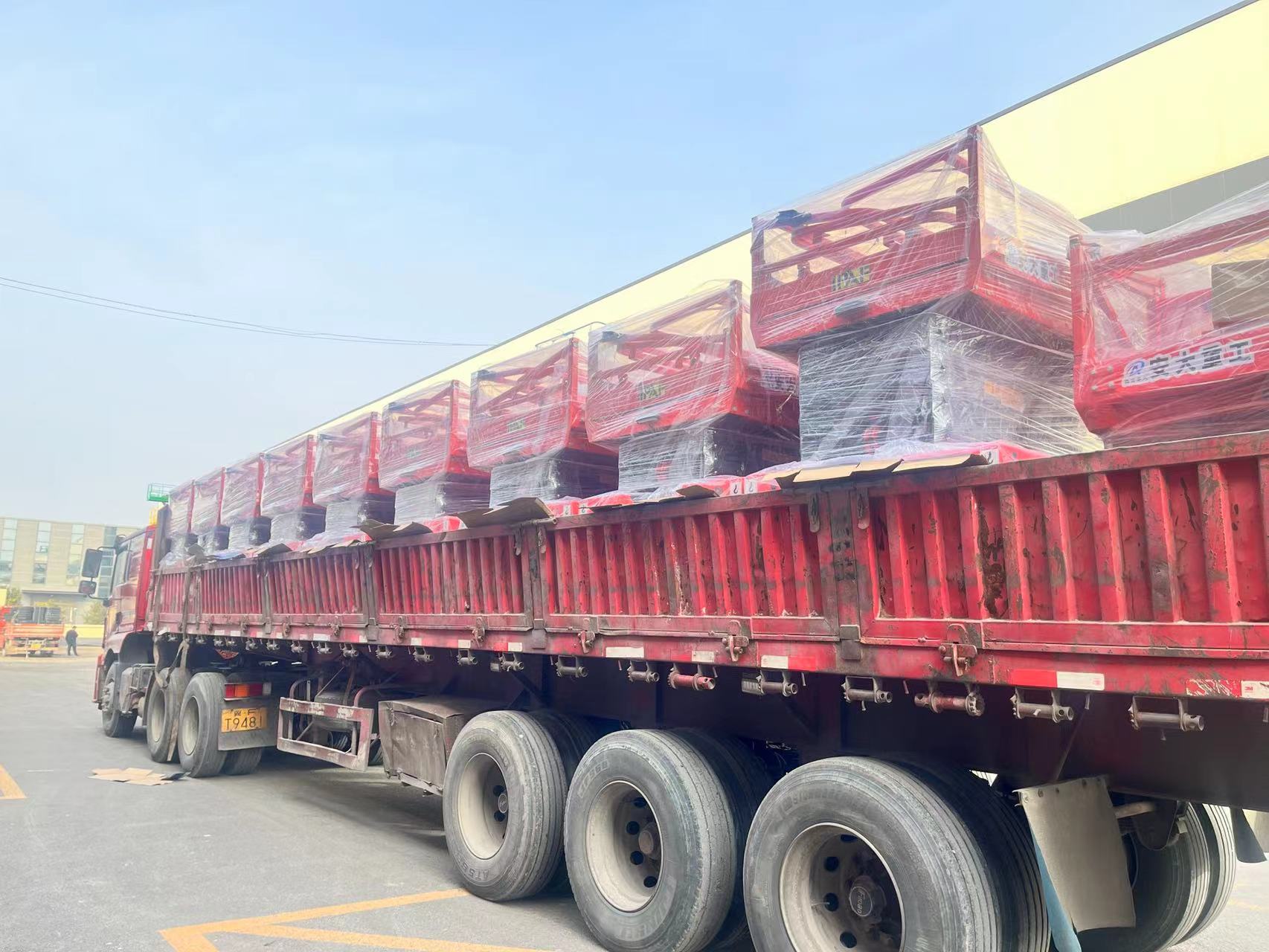 新征程,新高度!熱烈祝賀11臺自行走剪叉升降平臺順利裝車發貨!